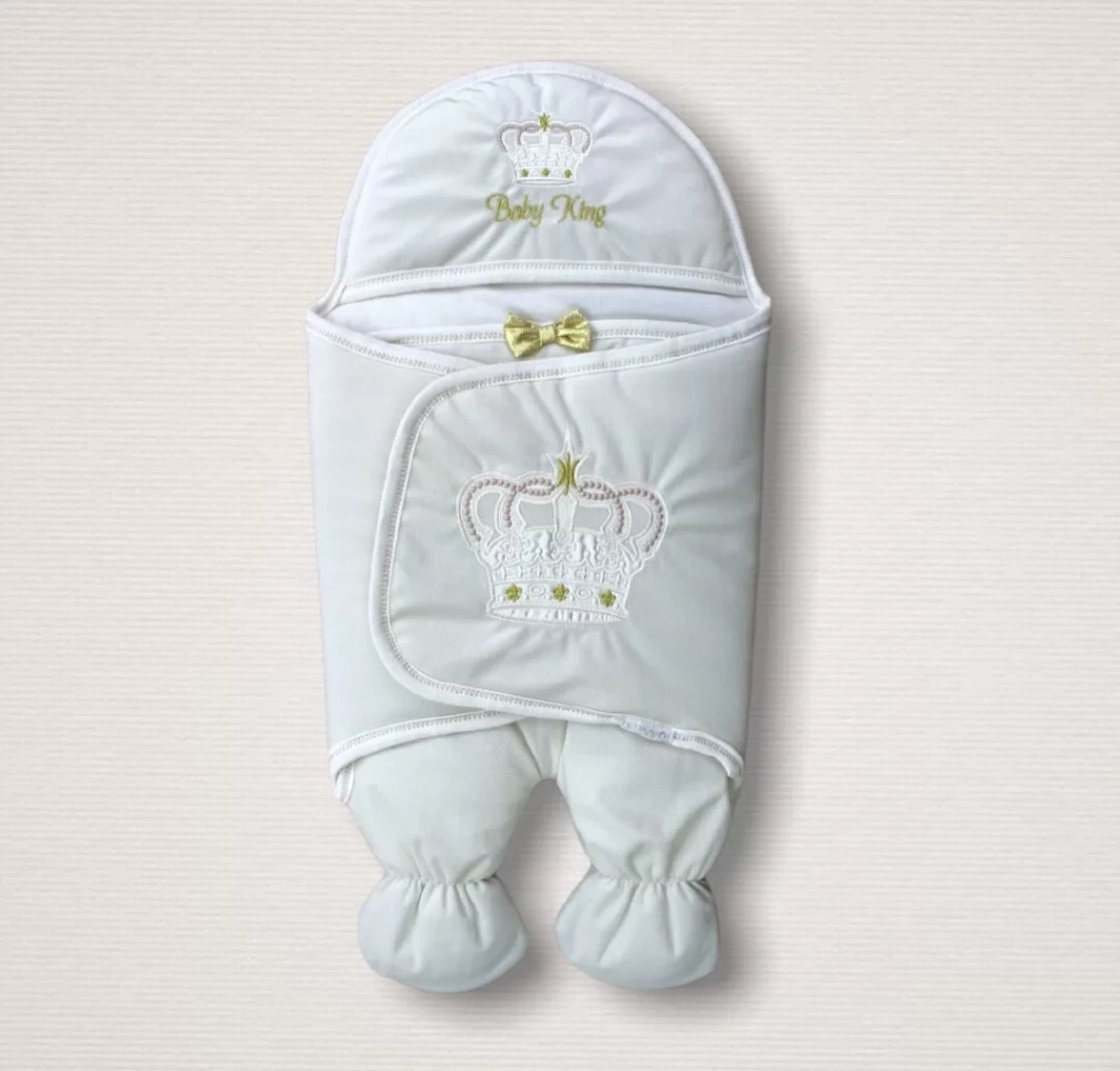 Yenidoğan King Nakışlı Ayaklı Erkek Bebek Kundak Ekru