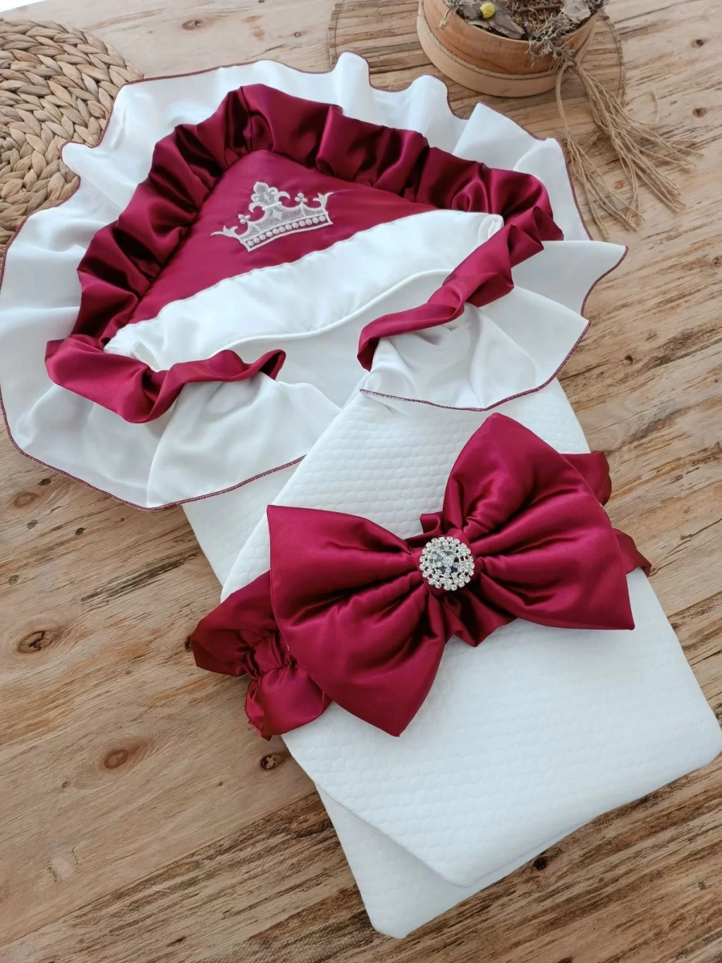 Yenidoğan Mehtap Lüks Kelebek Nakışlı Bebek Battaniyesi Kundak Bordo