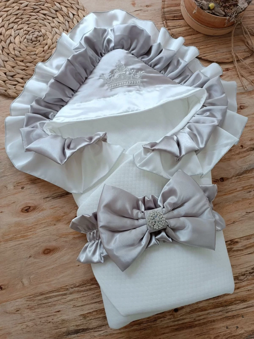 Yenidoğan Mehtap Lüks Kelebek Nakışlı Bebek Battaniyesi Kundak Gri