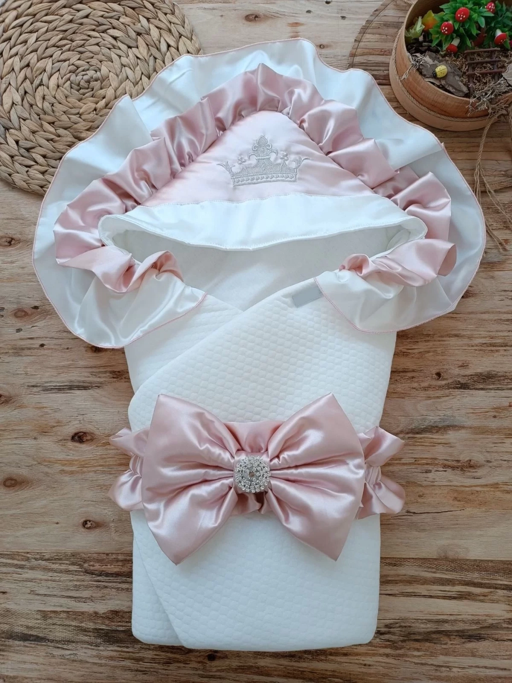 Yenidoğan Mehtap Lüks Kelebek Nakışlı Bebek Battaniyesi Kundak Gül Kurusu