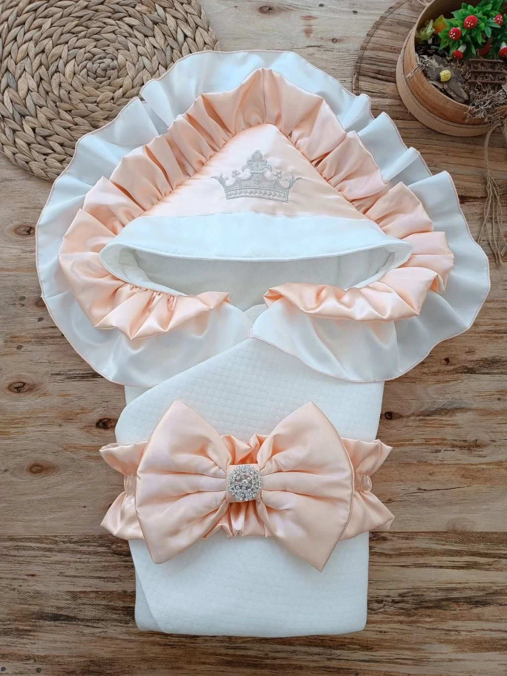 Yenidoğan Mehtap Lüks Kelebek Nakışlı Bebek Battaniyesi Kundak Pudra