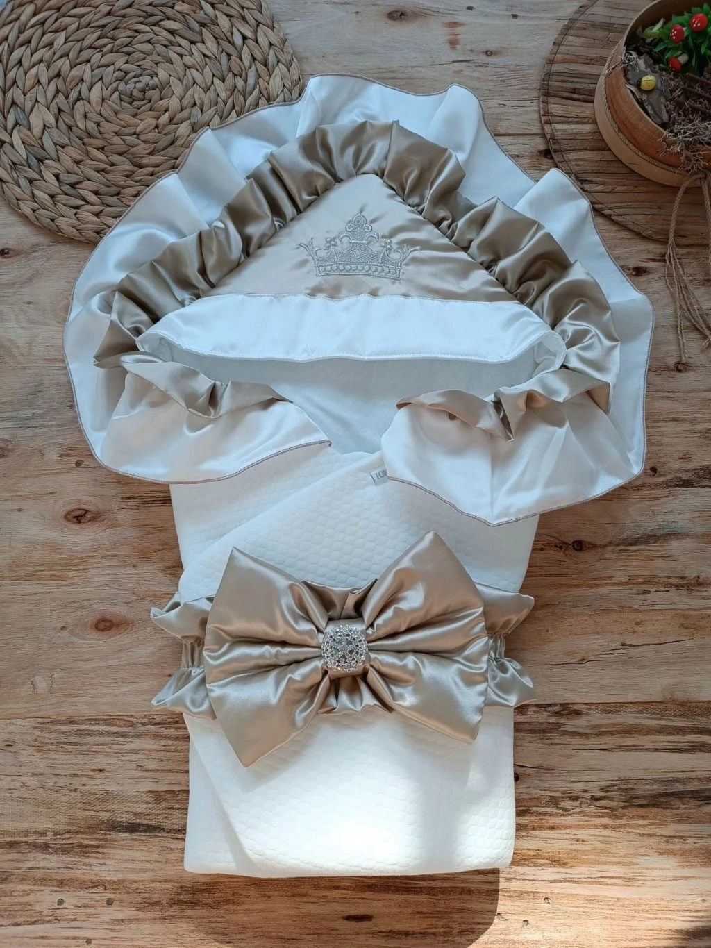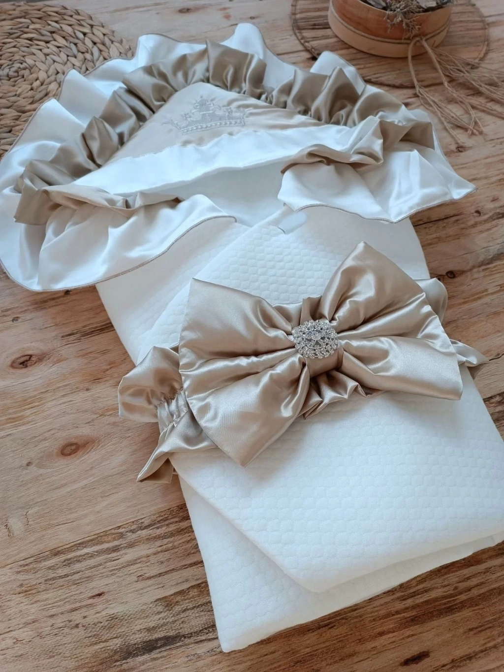 Yenidoğan Mehtap Lüks Kelebek Nakışlı Bebek Battaniyesi Kundak Vizon