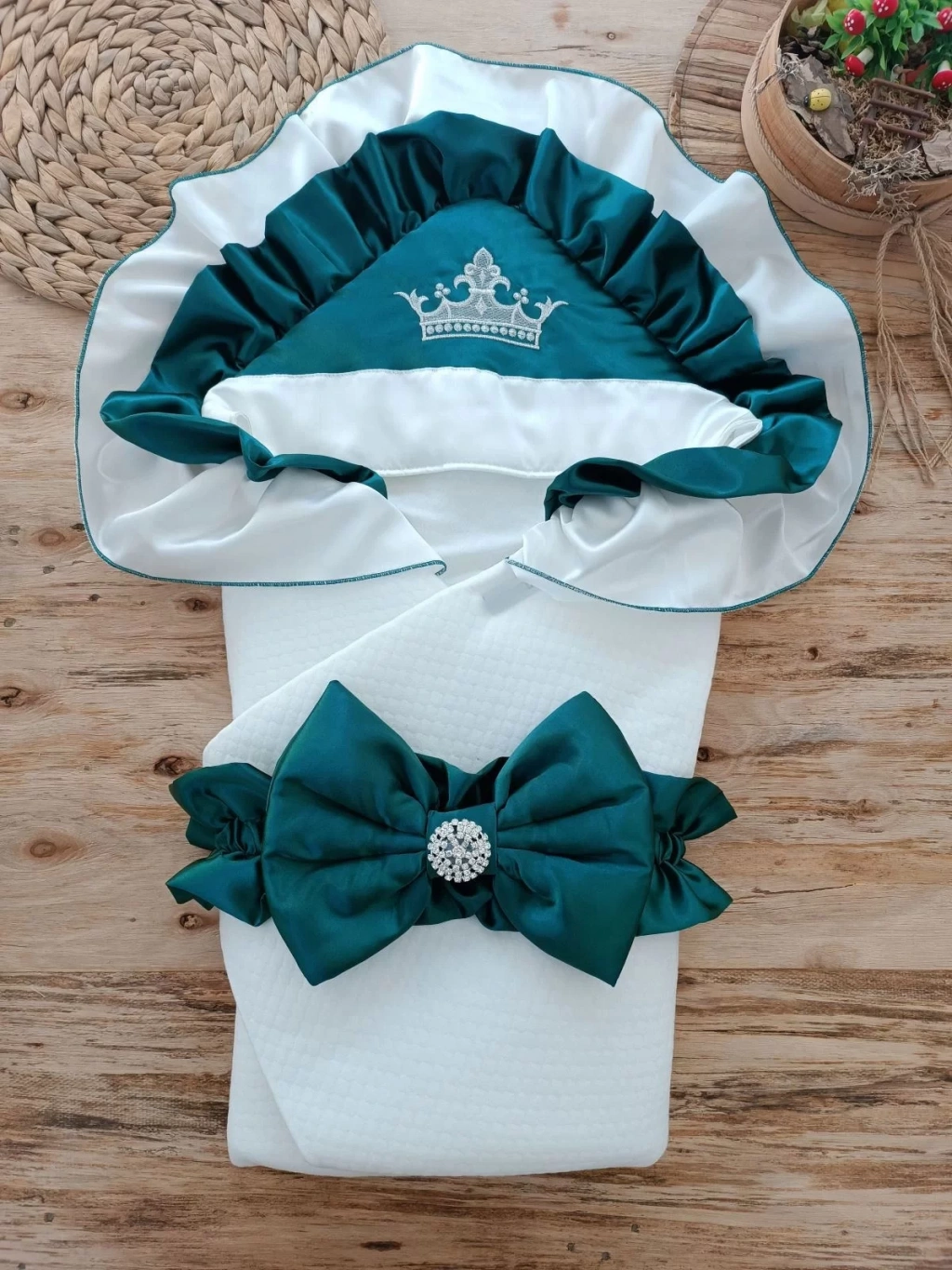 Yenidoğan Mehtap Lüks Kelebek Nakışlı Bebek Battaniyesi Kundak Zümrüt Yeşili
