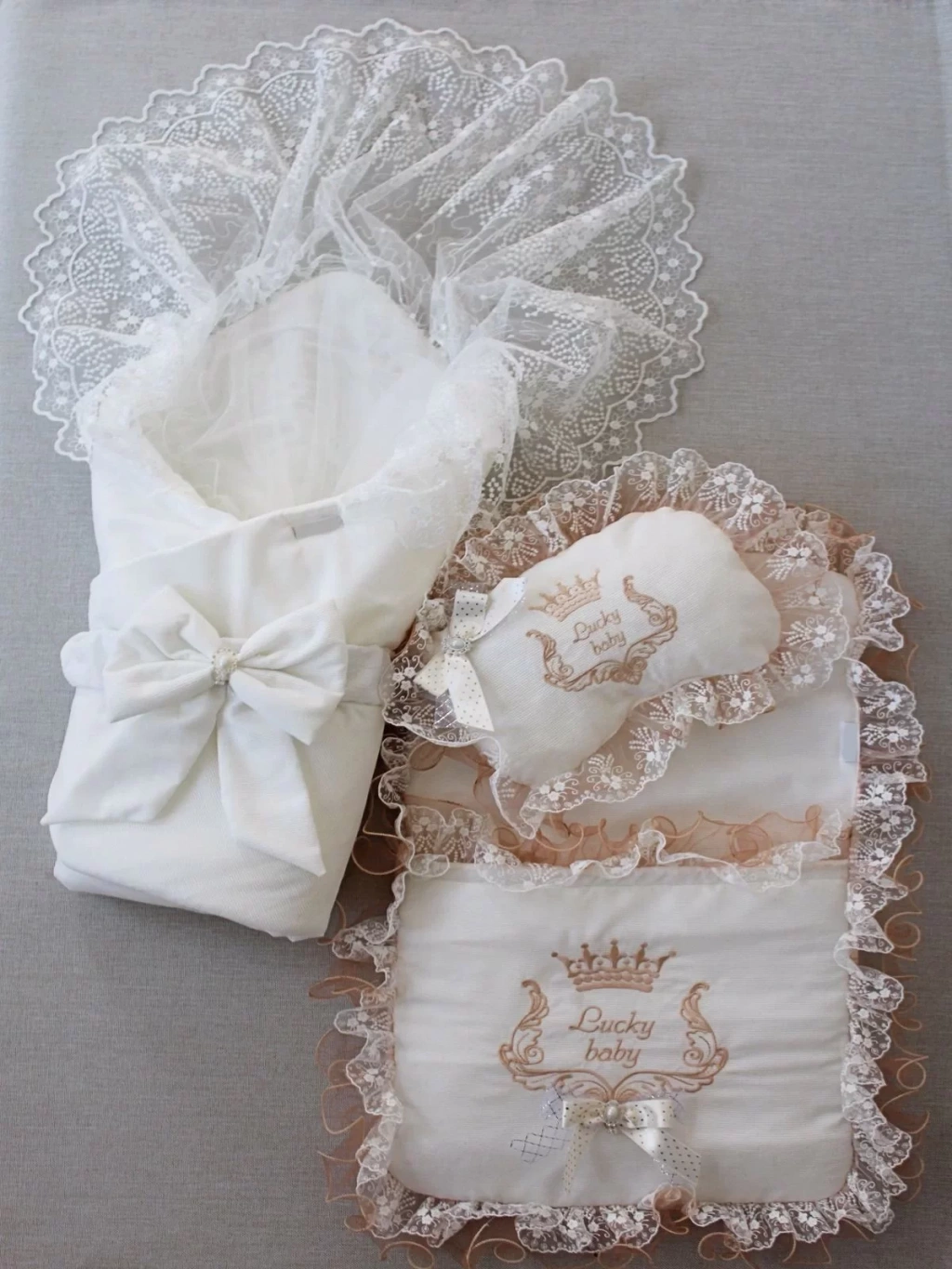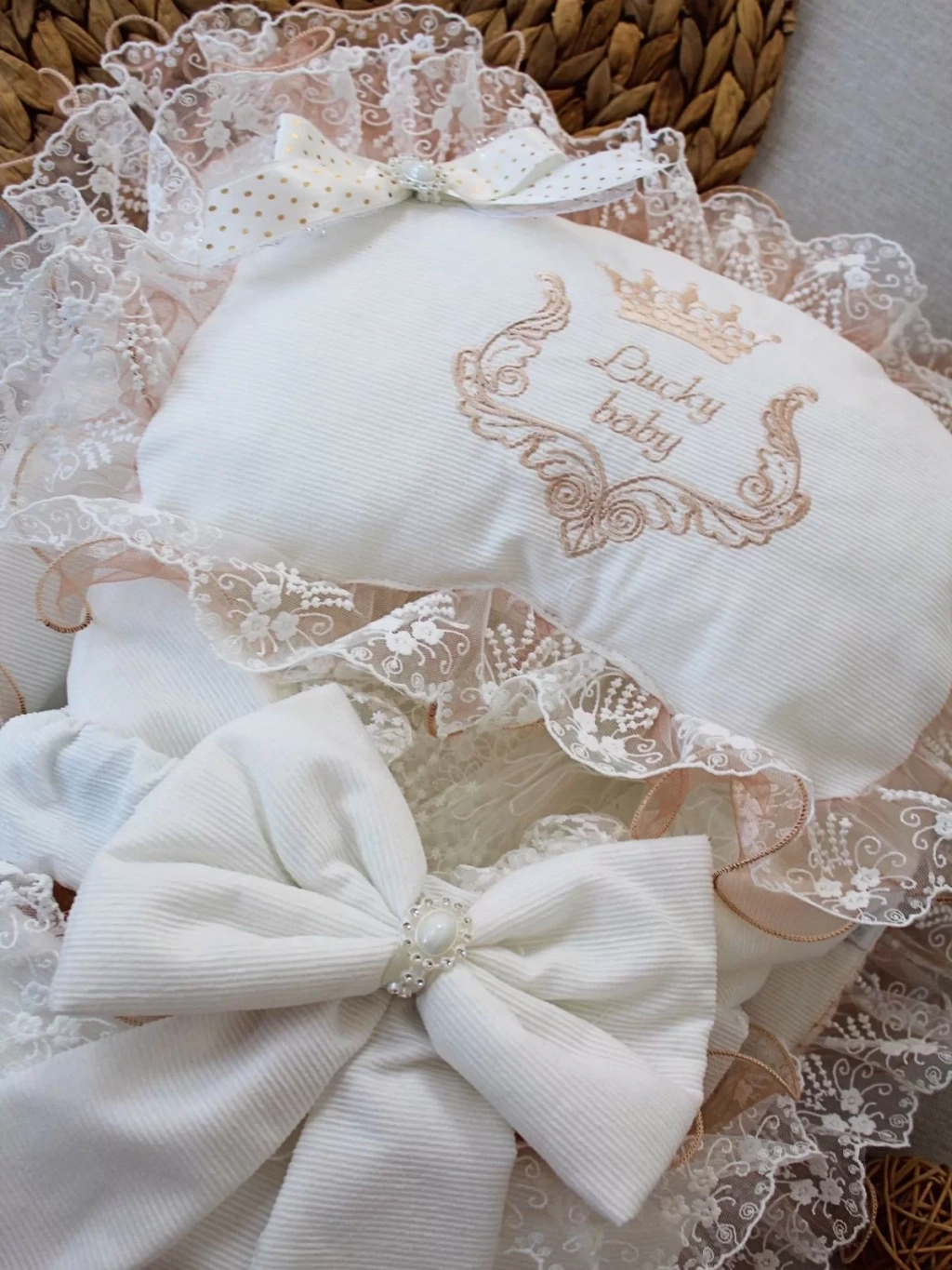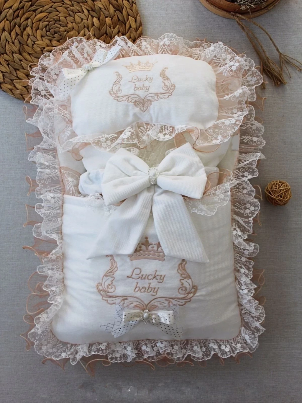 Yenidoğan Nil Nakışlı Kundaklı Trilüks 3lü Alt Açma Seti Bej