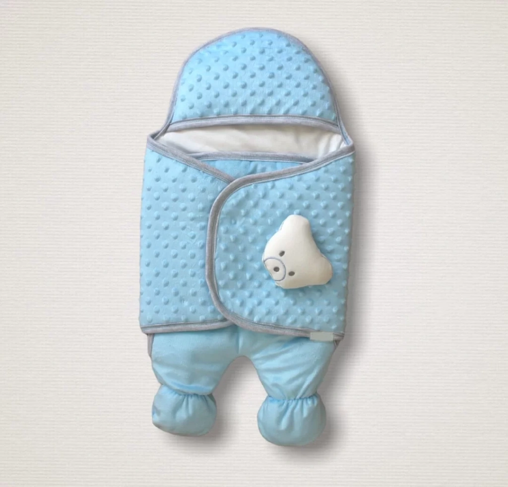 Yenidoğan Oyuncaklı Topçikli Kız Erkek Bebek Ayaklı Kundak Bebek Battaniyesi Mavi
