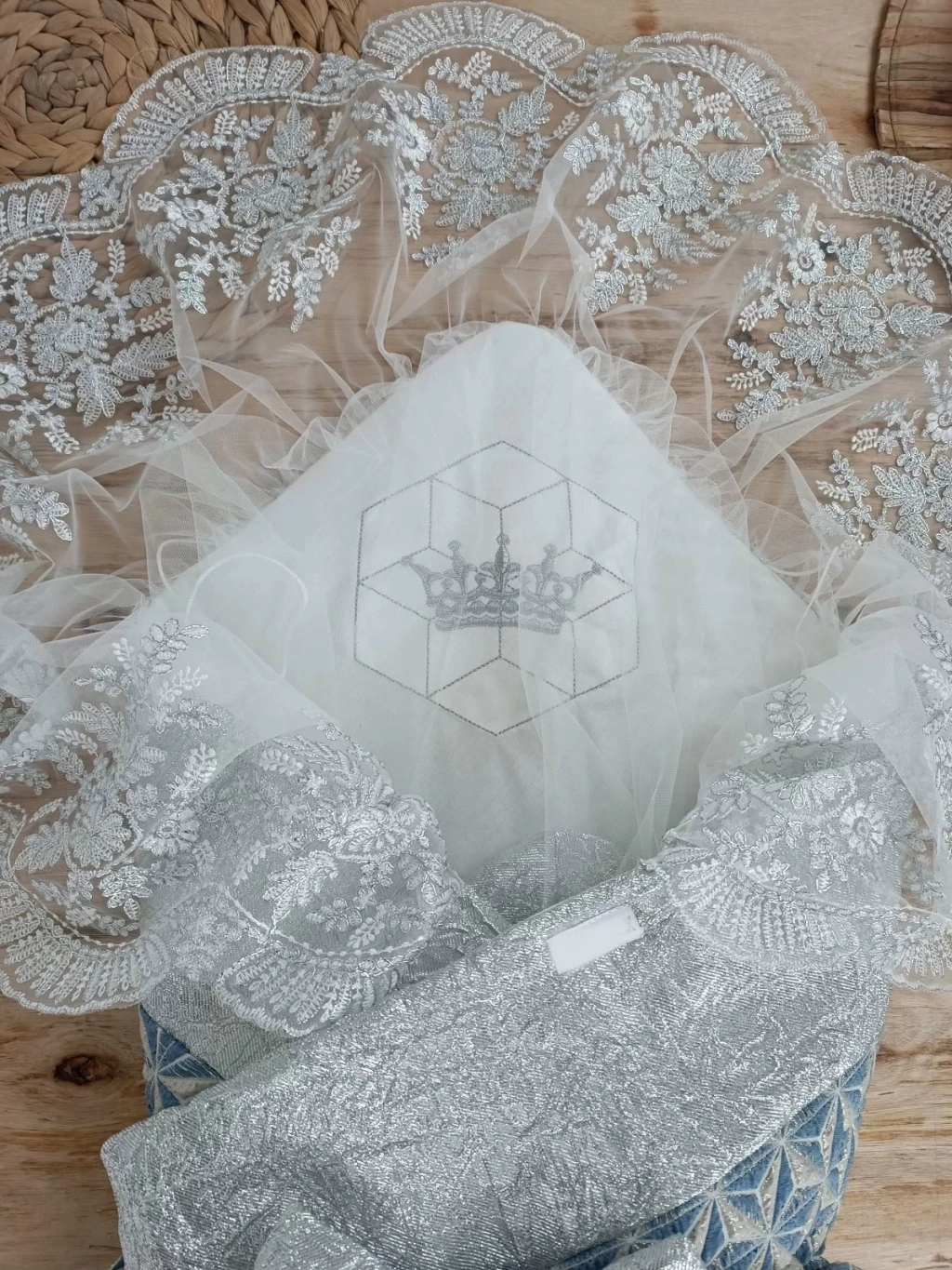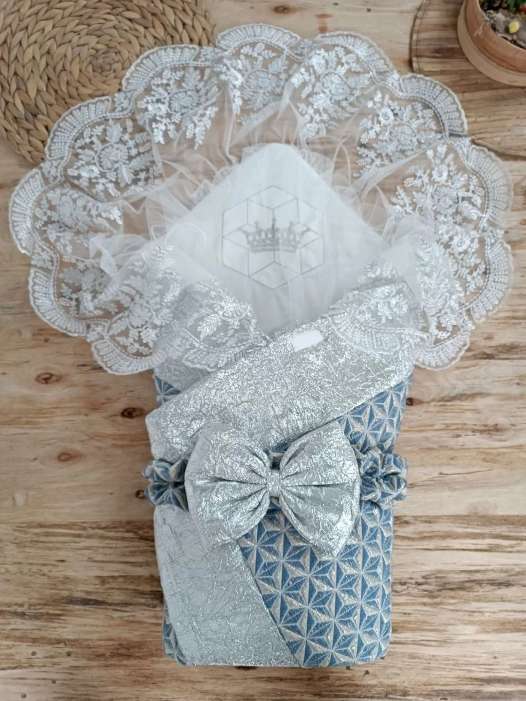 Yenidoğan Piramit Desenli Güpür İşlemeli Bebek Battaniyesi Kundak