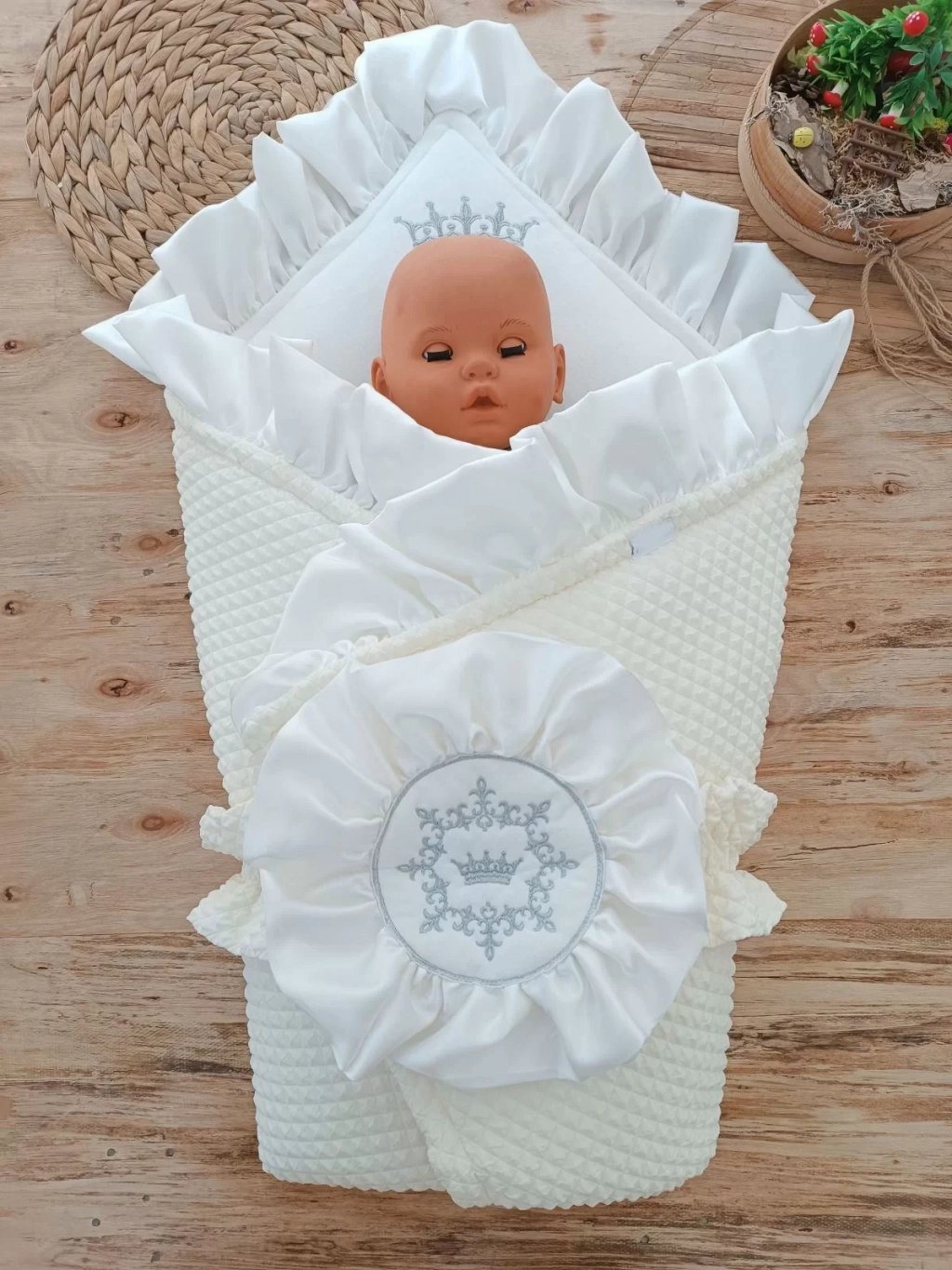 Yenidoğan Piramitland Soft Nakışlı Bebek Battaniyesi Kundak Krem