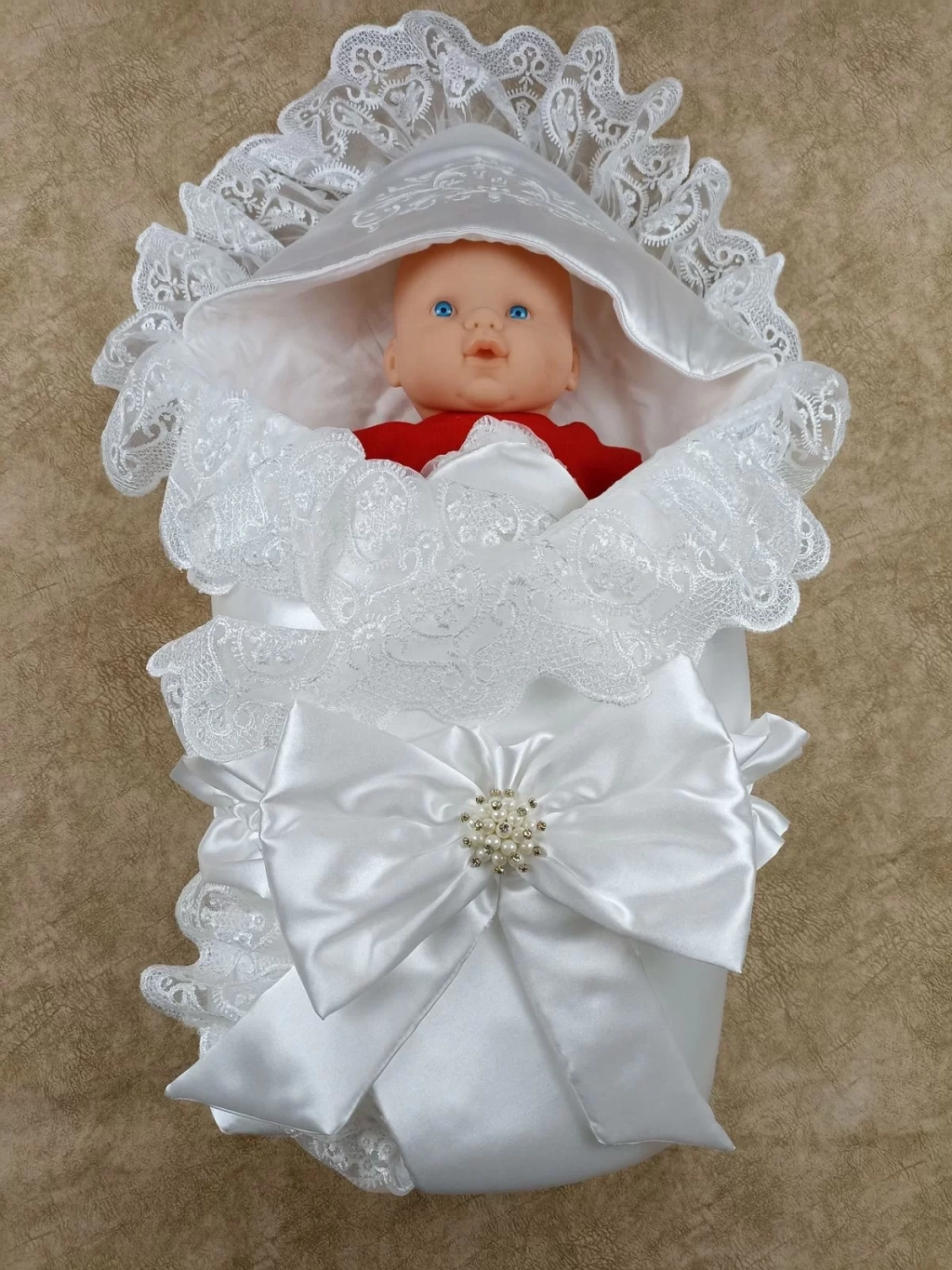Yenidoğan Pırıltı Nakış Detaylı Lüks Kundak Bebek Battaniyesi Ekru
