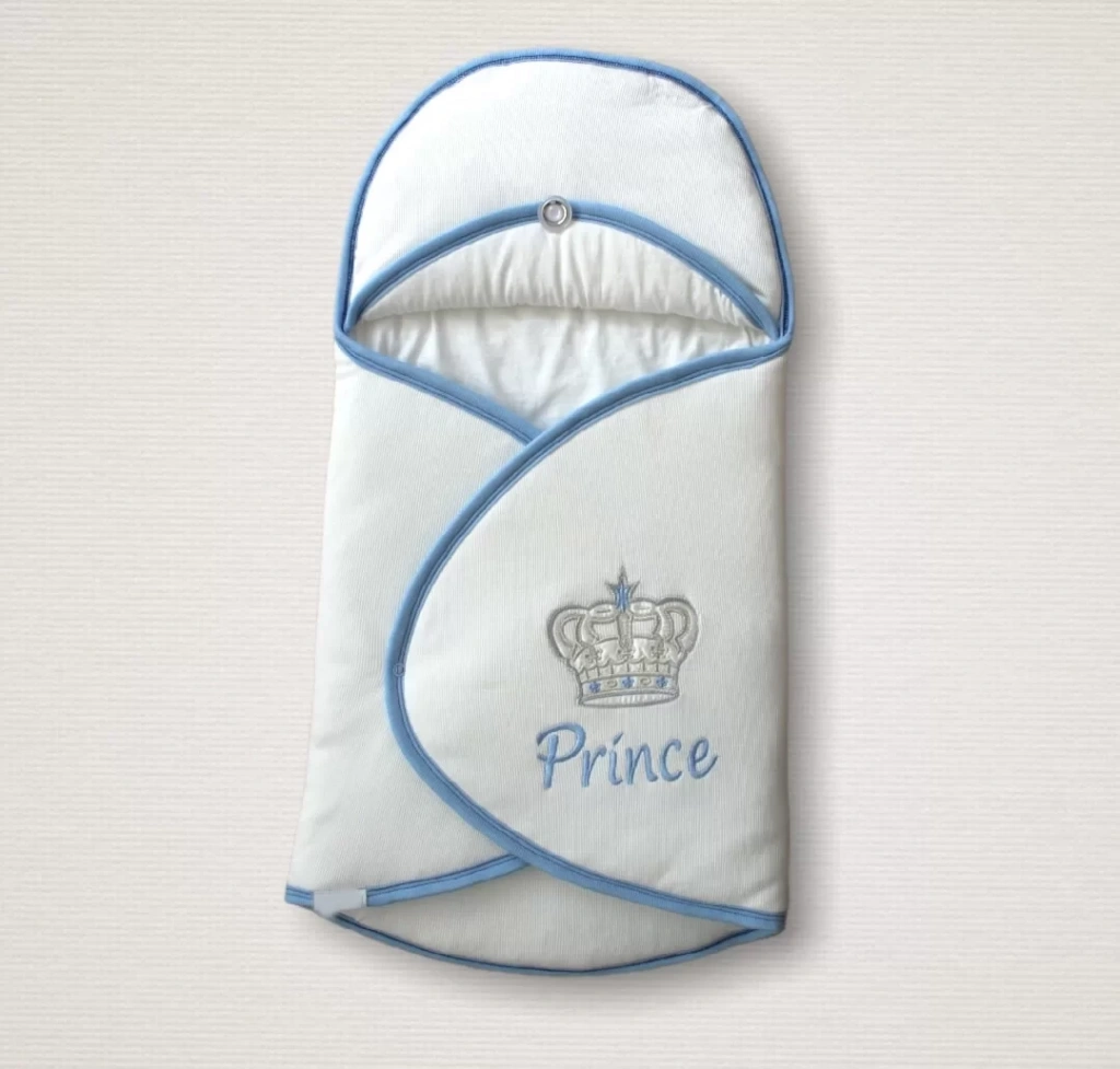 Yenidoğan Prince Nakışlı Çizgi Efektli Kız Bebek Klasik Kundak Bebek Battaniyesi Ekru