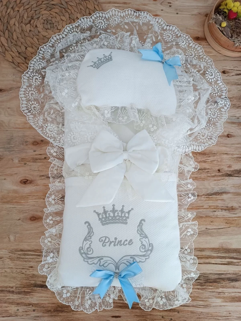Yenidoğan Sahra Benim Prensim Nakışlı Kundaklı Trilüks Erkek 3lü Alt Açma Seti Mavi