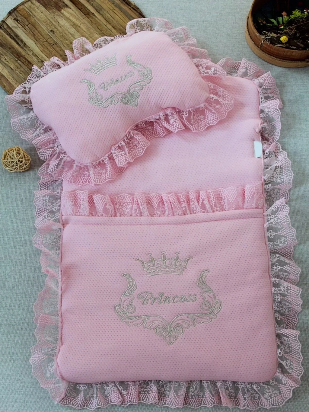 Yenidoğan Sahra Nakışlı Trilüks 2li Alt Açma Seti Pembe