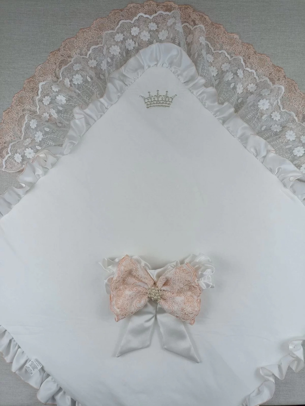 Yenidoğan Sahra Nakışlı Trilüks Kundak Bebek Battaniyesi Ekru