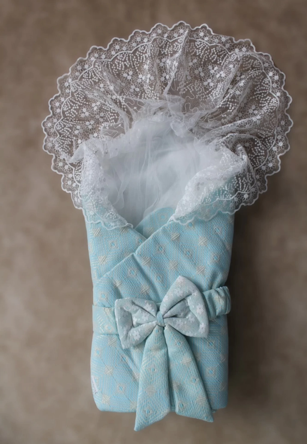 Yenidoğan Sedef Kareli Duvaklı Kız Kundak Bebek Battaniyesi Mint Yeşili