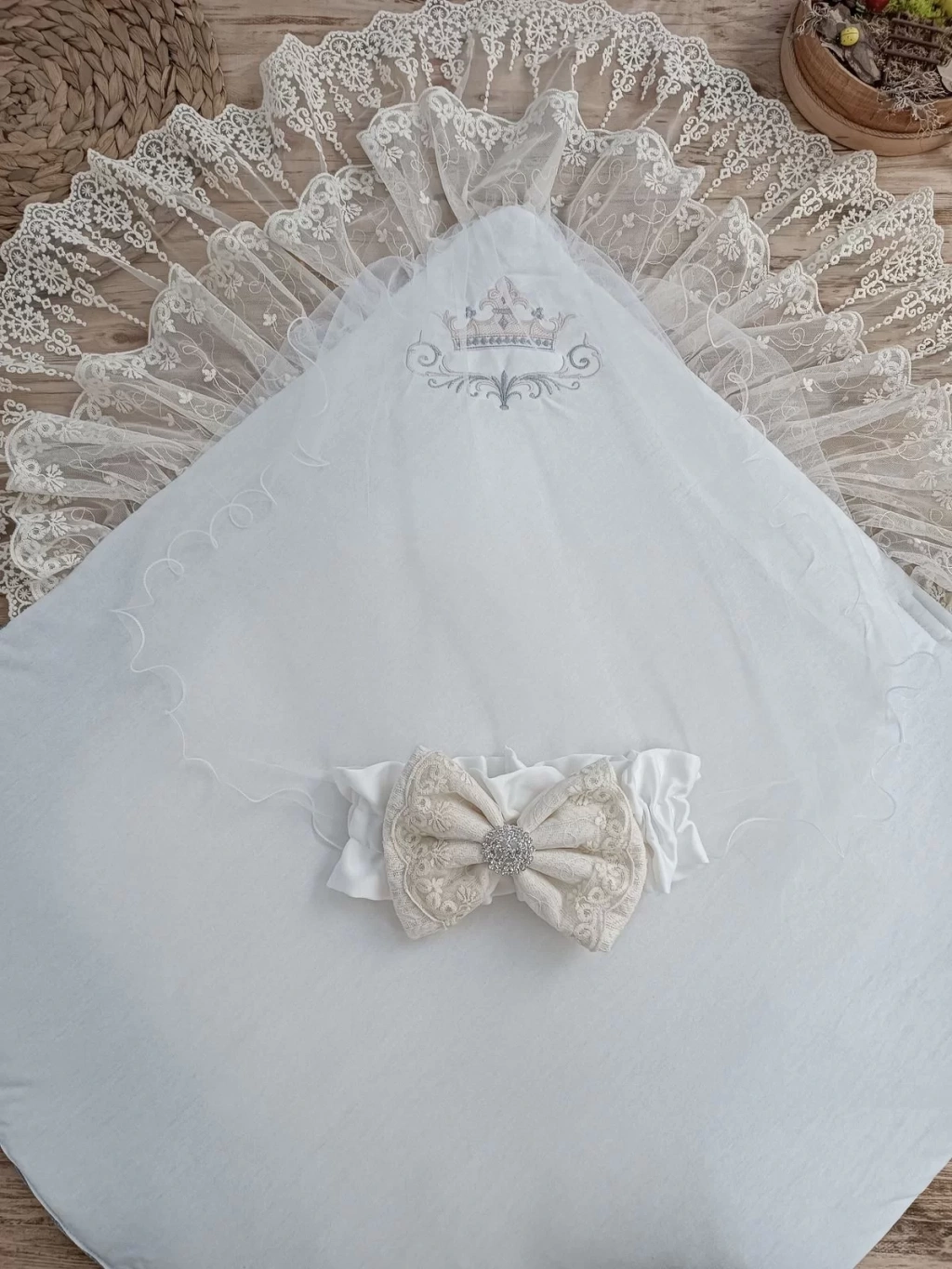 Yenidoğan Teri Nakışlı Prizma Taş Kundak Bebek Battaniyesi Krem