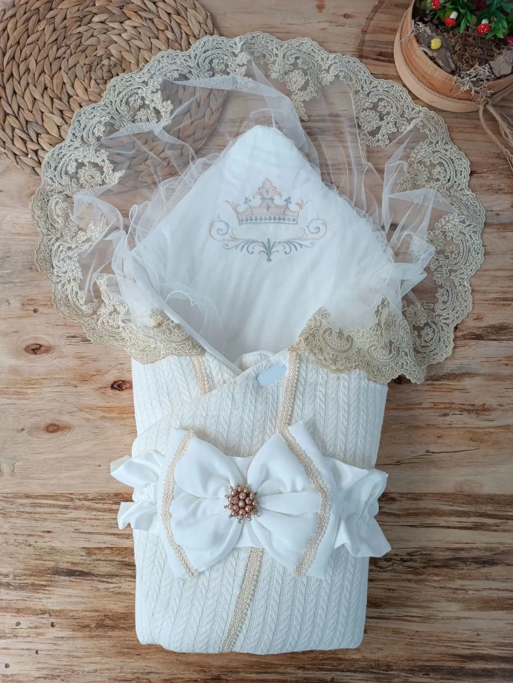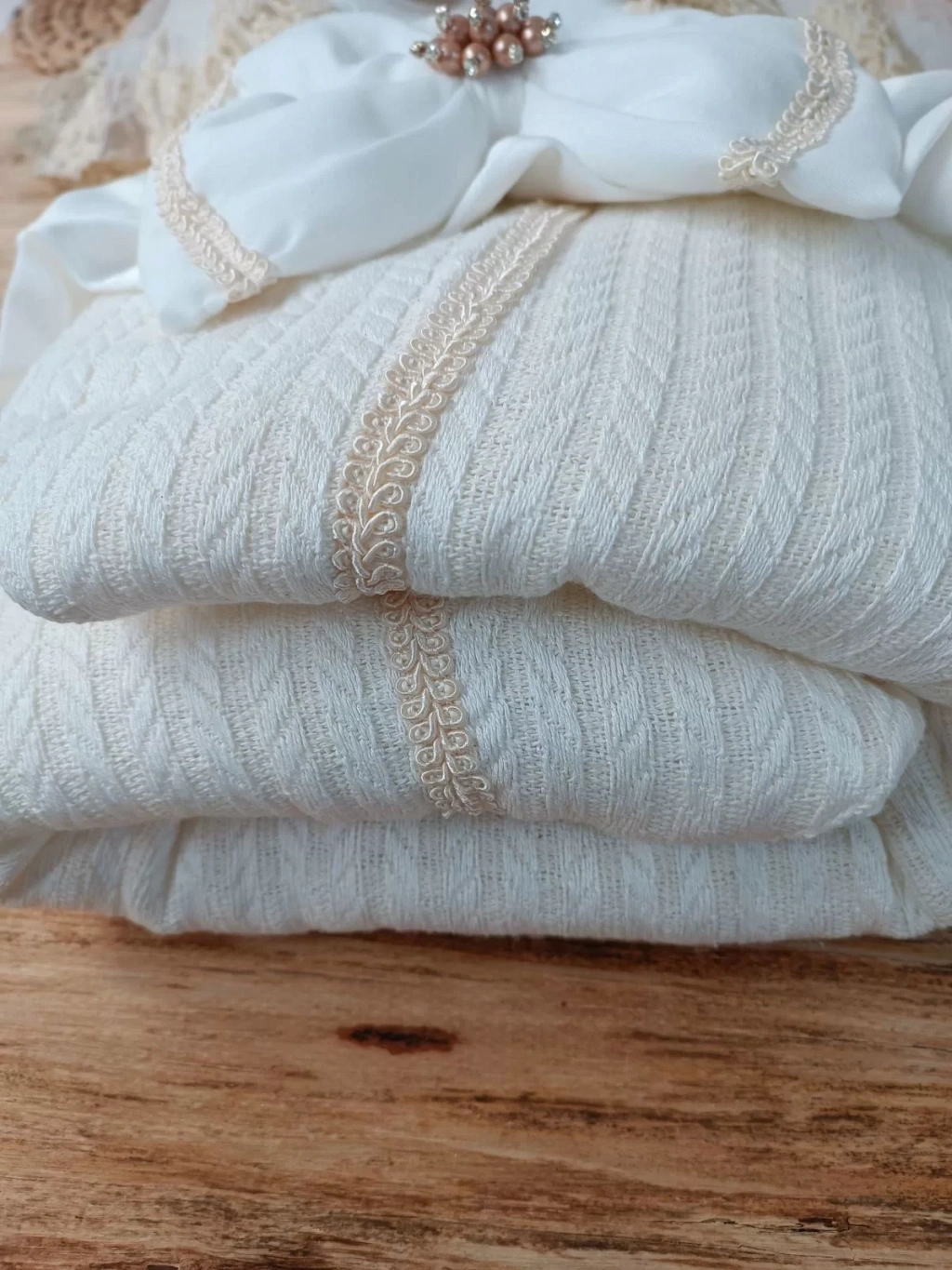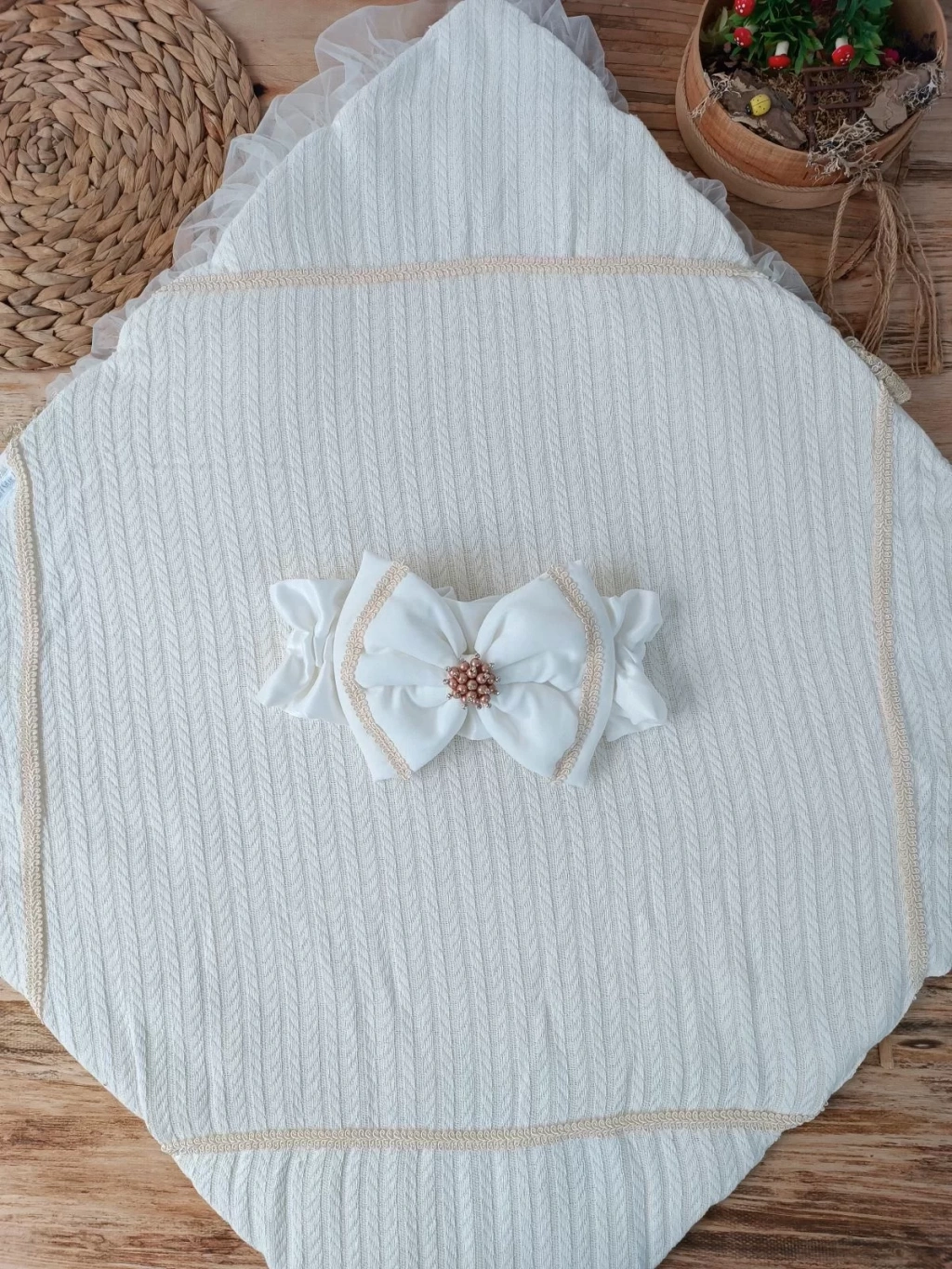Yenidoğan Teriörgülü Trilüx Bebek Battaniyesi Kundak Ekru