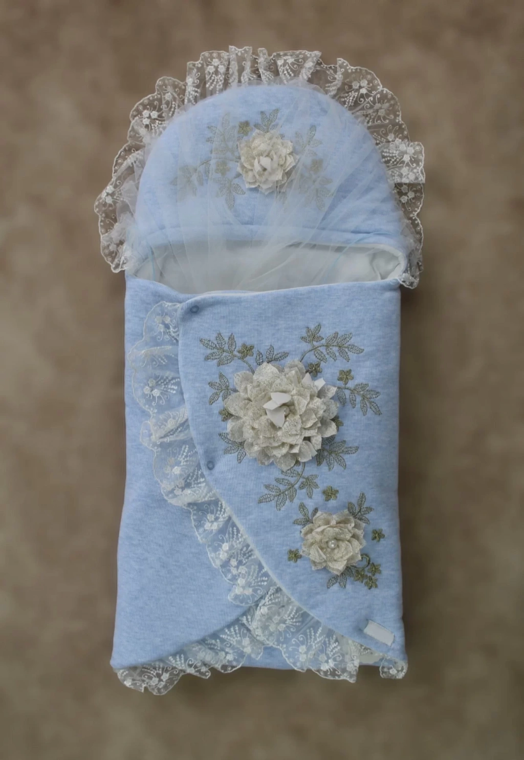 Yenidoğan Üç Gül Bahçesi Erkek Kundak Bebek Battaniyesi Mavi