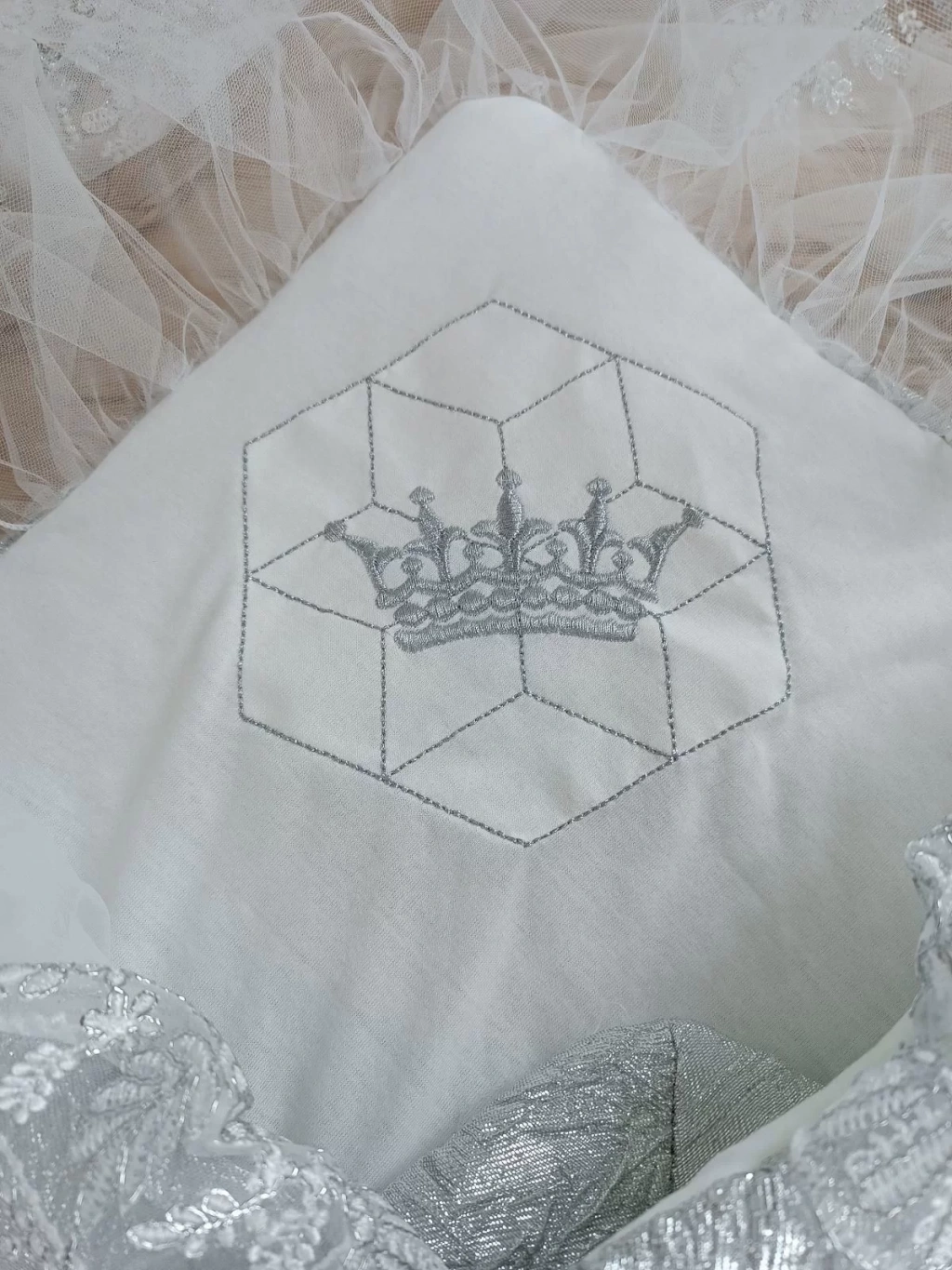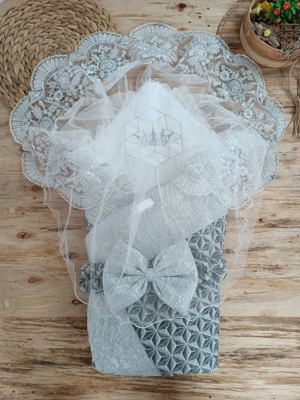 Yenidoğan Ultralüks Piramit Desenli Güpürlü Bebek Battaniyesi Kundak