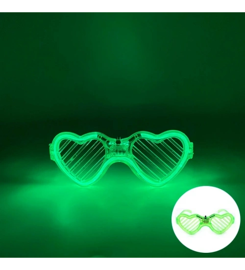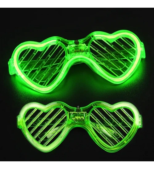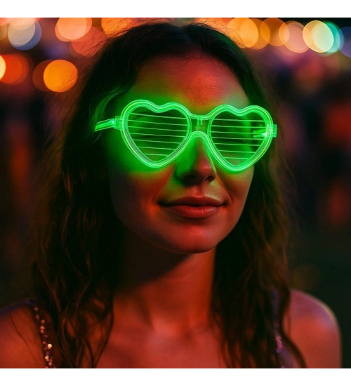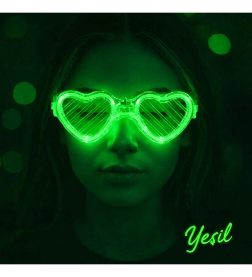 Yeşil LED Işıklı Kalp Gözlük – 3 Modlu Parti