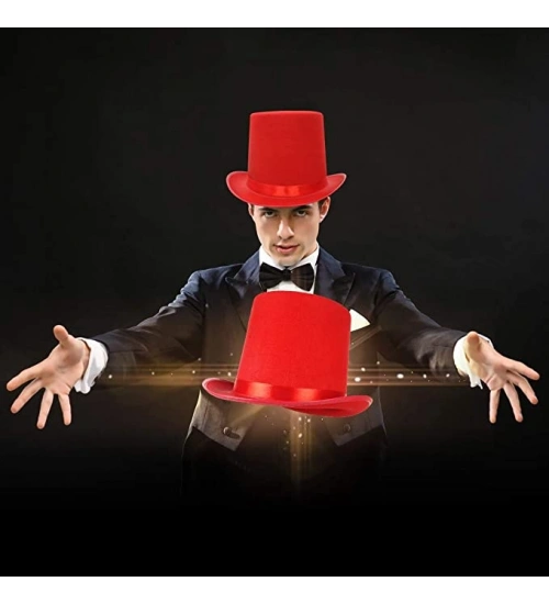 Yetişkinler İçin Kırmızı Renk Ringmaster Sihirbaz Şapkası Fötr Şapka 15cm