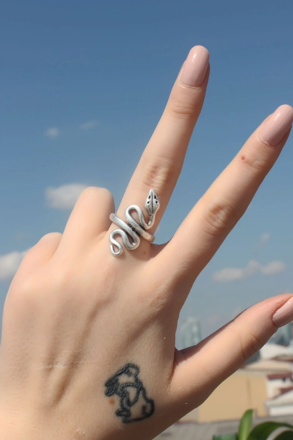 Yılan Figürlü Metal Ayarlamalı Antik Yüzük