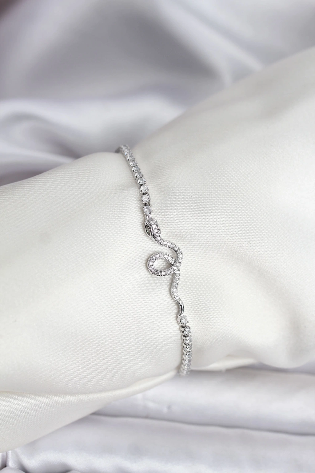 Yılan Model Zirkon Taşlı Gümüş Renk Pirinç Su Yolu Kadın Bileklik