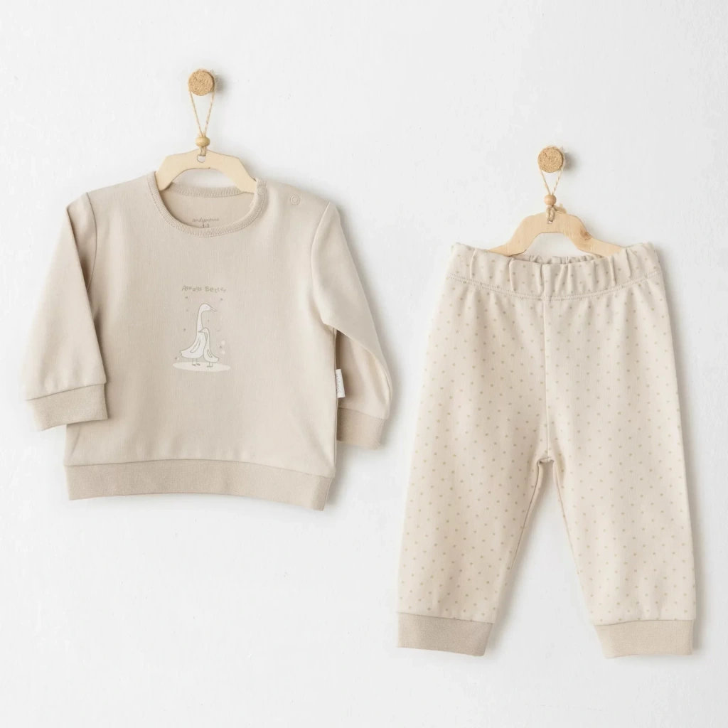 9-12-18-24 Ay Pohh Desenli Uzun Kollu Sweat 2Li Kız Erkek Bebek Takımı Krem