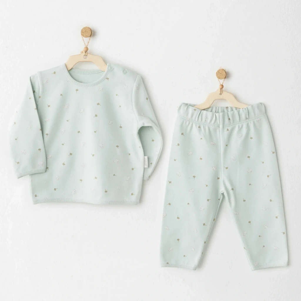 9-12-18-24 Ay Pohh Desenli Uzun Kollu Sweat 2Li Kız Erkek Bebek Takımı Krem