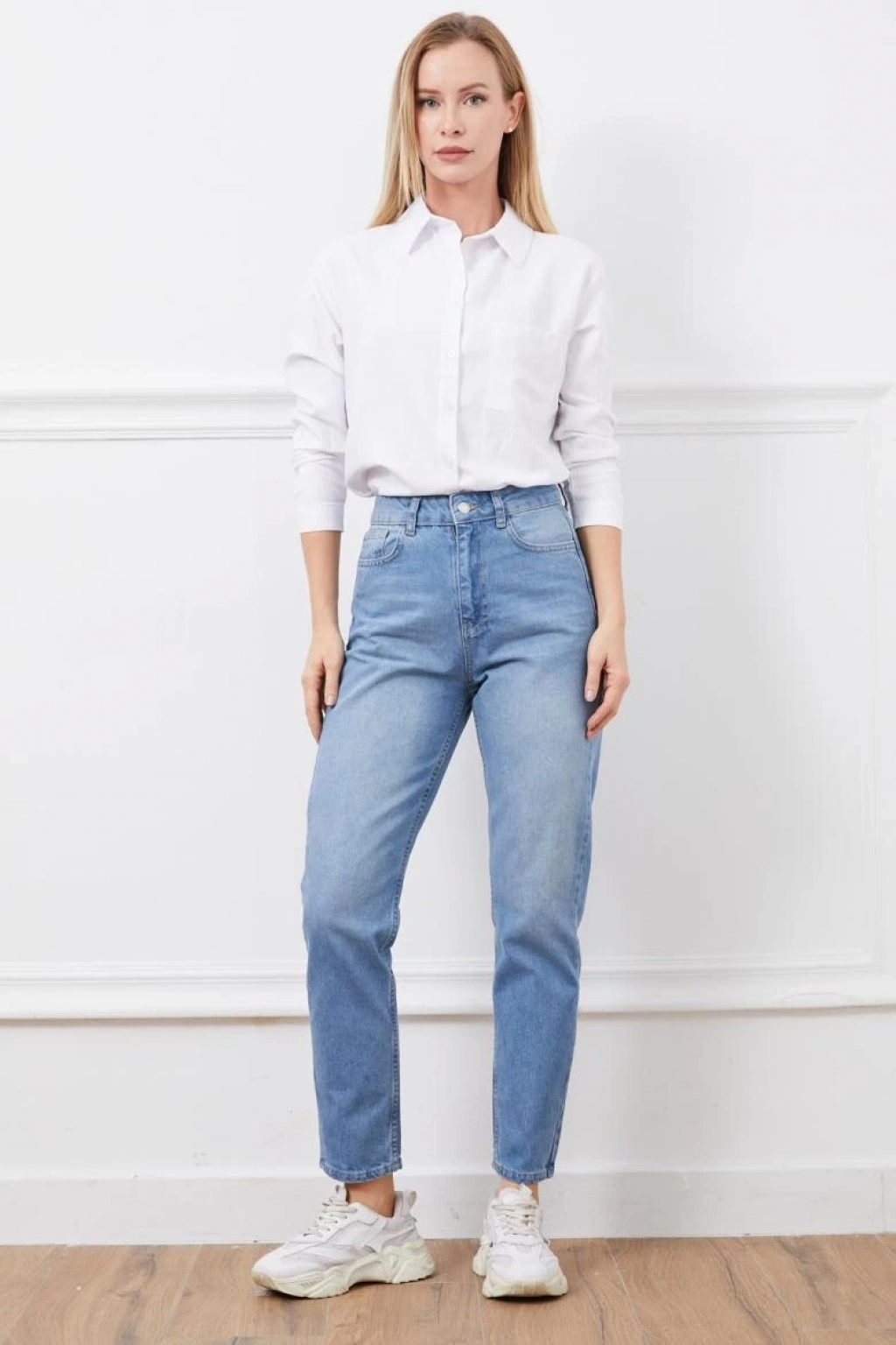 Baggy kar yıkama orta mavi jeans pantolon d2007