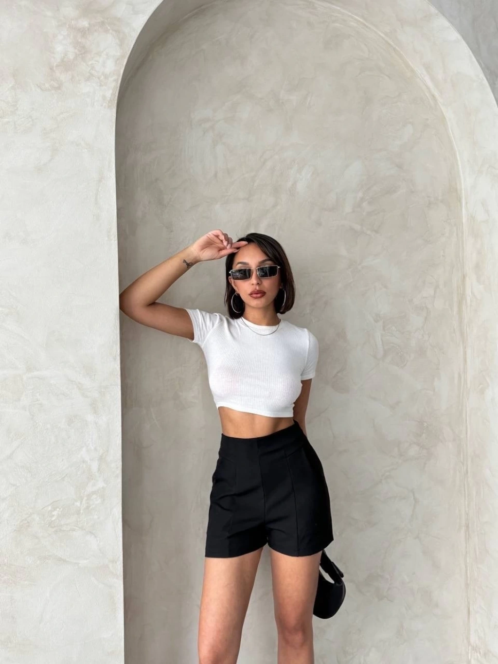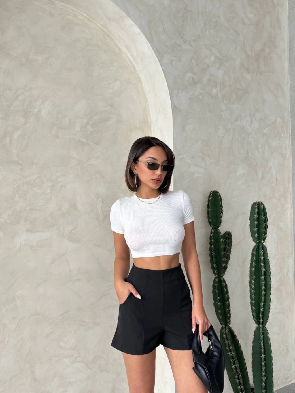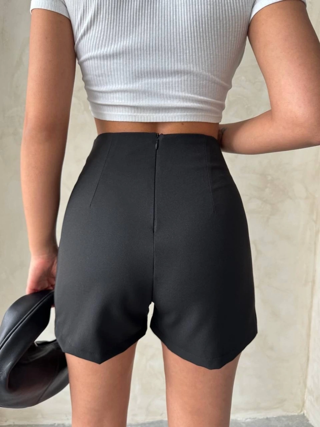 Kapaklı kaşe şort etek siyah beyaz kazayağı h261218