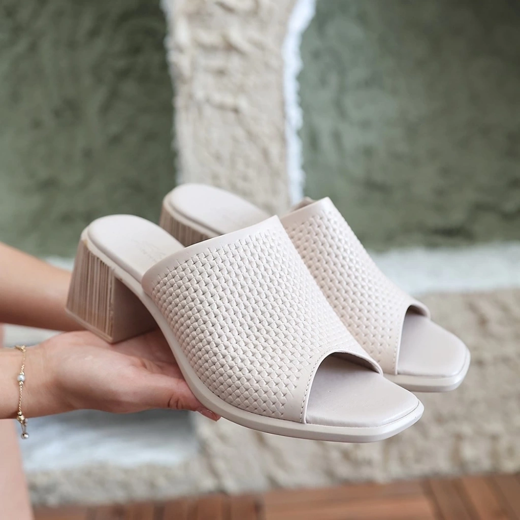 Ciey Bej Cilt Topuklu Terlik