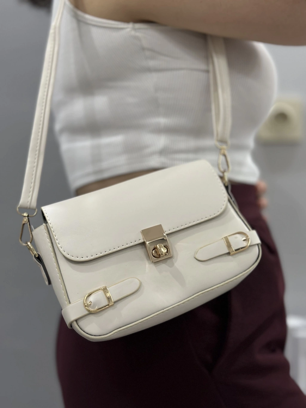 Zerej kemerli krem cilt çanta, şıklığı ve kullanışlığı bir arada sunar. Detaylı işçilik ve kaliteli malzeme kullanımı ile tasarlanmıştır.