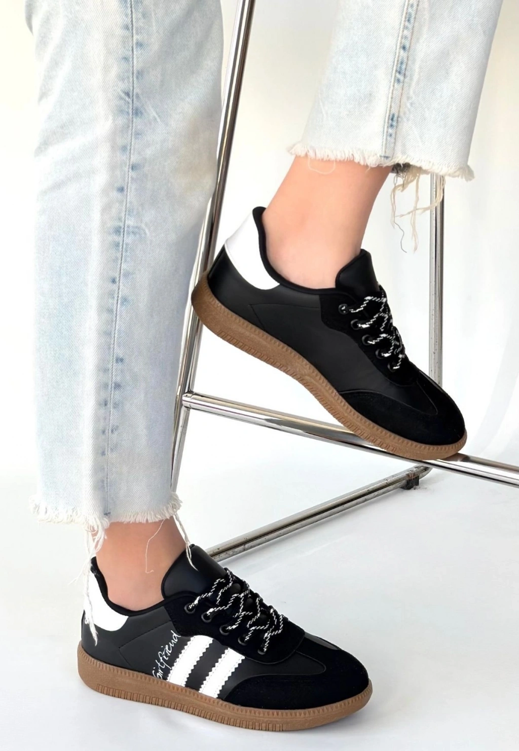 Rimay Siyah Cilt Boncuk İşlemeli Spor Ayakkabı