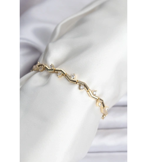 Zikzak Model Pirinç Gold Renk Bileklik