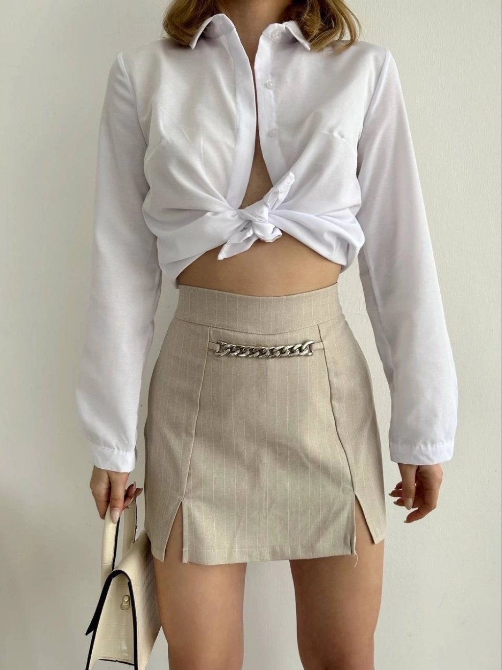 İki düğmeli şort etek beyaz h26414