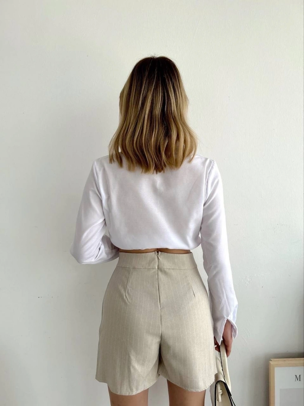 Müslin kumaş şort bağcıklı beyaz pt