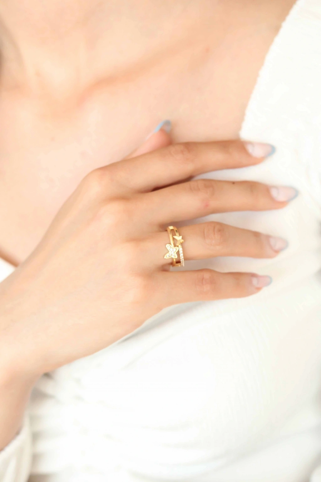 Zirkon Taşlı Altın Kaplama Kelebek Kadın Yüzük