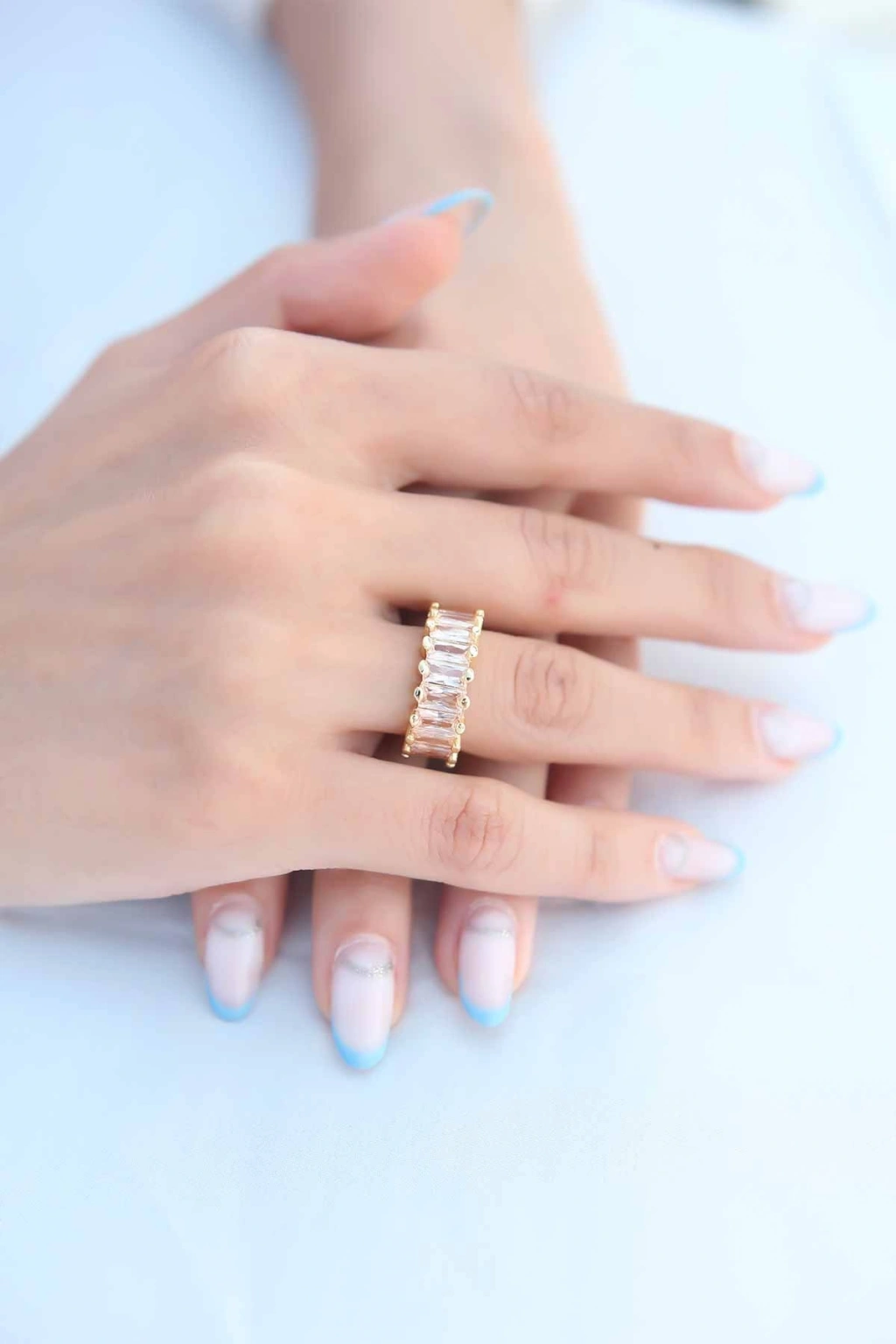Zirkon Taşlı Baget Gold Renk Kadın Yüzük
