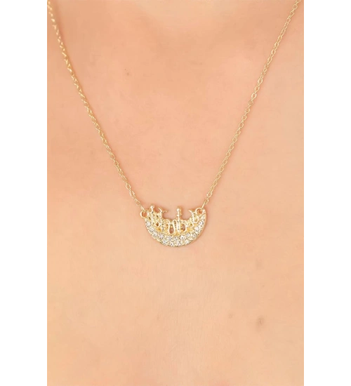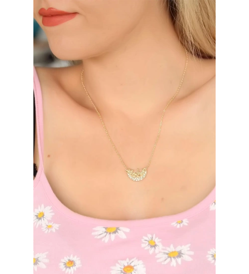 Gold renk kaplama Zirkon Taşlı Bayan Kolye