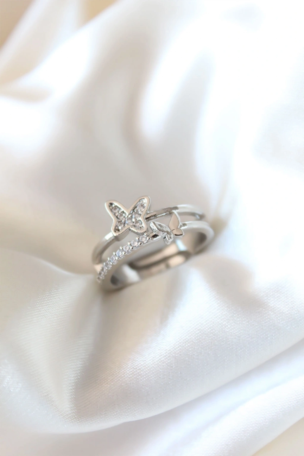 Zirkon Taşlı Gümüş Kaplama Kelebekli Kadın Yüzük
