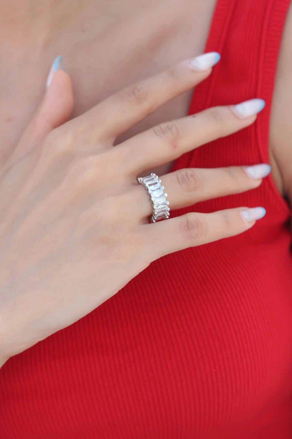 Zirkon Taşlı Gümüş Renk Baget Kadın Yüzük