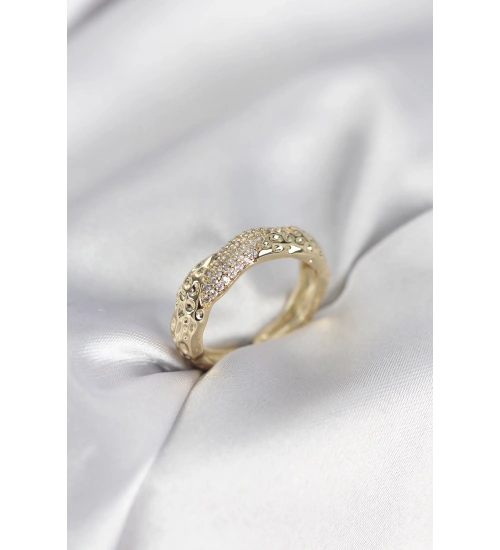 Zirkon Taşlı Puntalı Gold Renk Kadın Yüzük