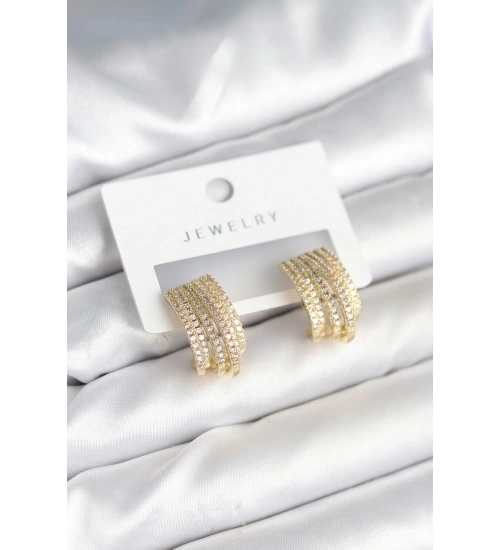 Zirkon Taşlı Şerit Model Gold Renk Pirinç Kadın Küpe