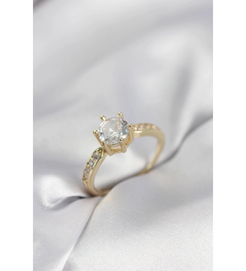 Zirkon Taşlı Tek Taş Model Gold Renk Kadın Yüzük