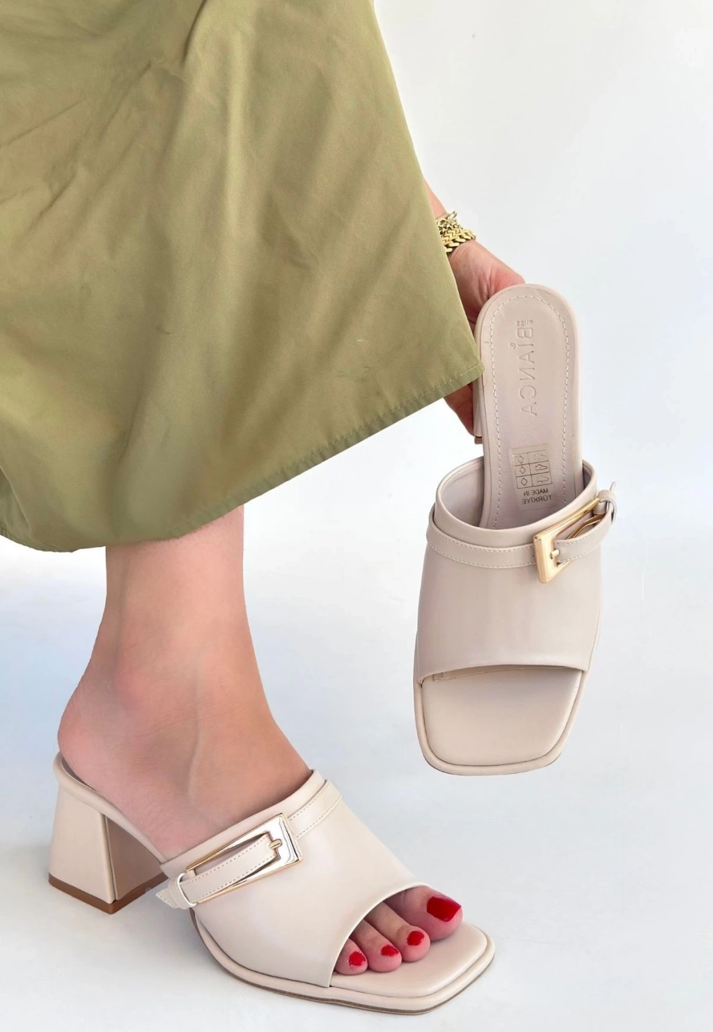 Niyyar Beyaz Cilt Topuklu Terlik