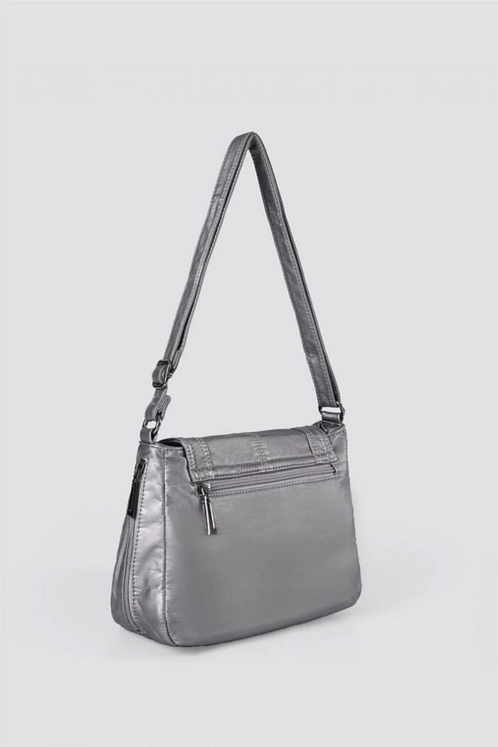 • Ziwen Gri Cilt Omuz Çantası