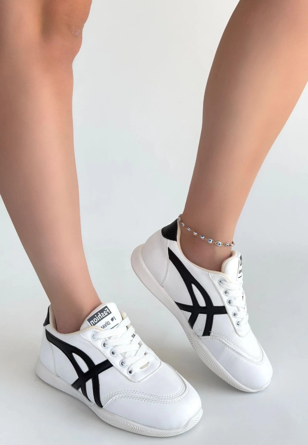 Zlay Beyaz Cilt Siyah Detaylı Bağcıklı Spor Ayakkabı